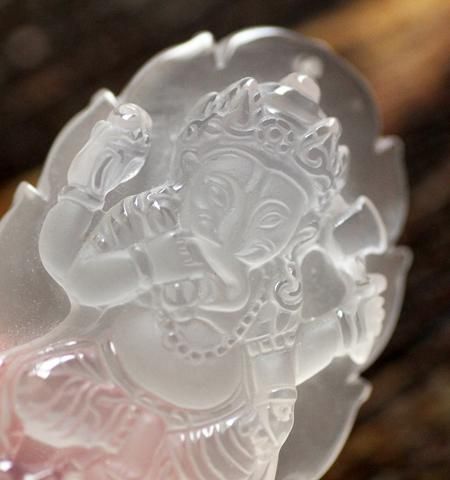 《ガネーシャ》ガネーシャとはガナ(魔人の群れ)のイーシャ(王)を意味します。シヴァ神とその妃パールヴァティーの息子であるガネーシャ神は、智慧と学問の神様であると同時に、商売や財宝をつかさどる神でもあります。